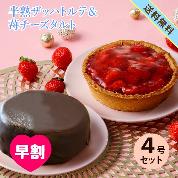 4. 【早割】3月1日~3月25日お届けまで ホワイトデー ツインケーキセット 半熟ザッハトルテ 4号 & ごろごろ苺のチーズタルト 4号 (おのし・包装・ラッピング不可)