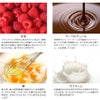 乳等を主要原料とする食品(国内製造)、クリーム(乳製品)、フランボワーズ、砂糖、卵、小麦粉、ココアパウダー、ゼラチン、寒天、カカオマス、苺、ショートニング、植物油脂、脱脂粉乳/膨張剤、乳化剤、ゲル化剤(ペクチン)、トレハロース、着色料(カラメル、紅麹、クチナシ)、香料、(一部に乳成分・卵・小麦・ゼラチン・大豆・オレンジを含む)